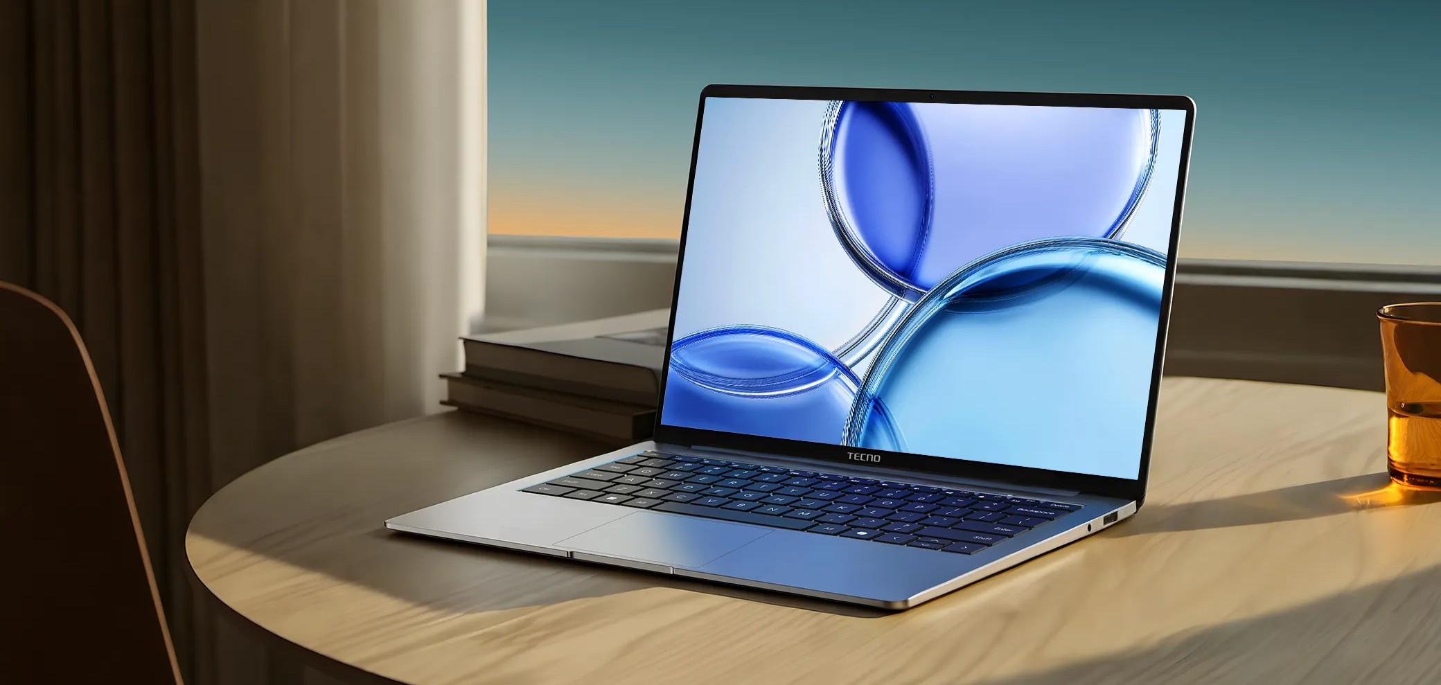Tecno Megabook T14RA Air создан как лёгкий и аккуратный рабочий инструмент. Корпус тонкий, минималистичный, с ровными линиями и аккуратными рамками вокруг экрана. Ноутбук ощущается очень лёгким в руках, поэтому его удобно носить с собой каждый день. Конструкция собрана жёстко, без лишнего прогиба, а форм-фактор позволяет комфортно пользоваться устройством как за столом, так и в дороге.