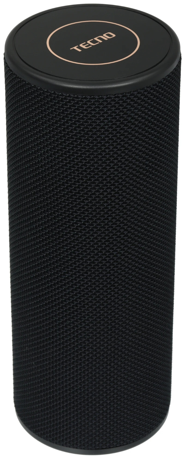 Tecno S6 выполнен в стильном сочетании черного и золотистого цветов, а корпус изготовлен из пластика, ткани и резины, что придаёт устройству прочность и устойчивость к механическим воздействиям. Его компактные размеры — 216×78×78 мм — и вес около 880 граммов делают динамик удобным для переноски и использования как дома, так и на улице. При этом корпус обладает степенью влагозащиты IPX4, что гарантирует защиту от брызг и легкого дождя.