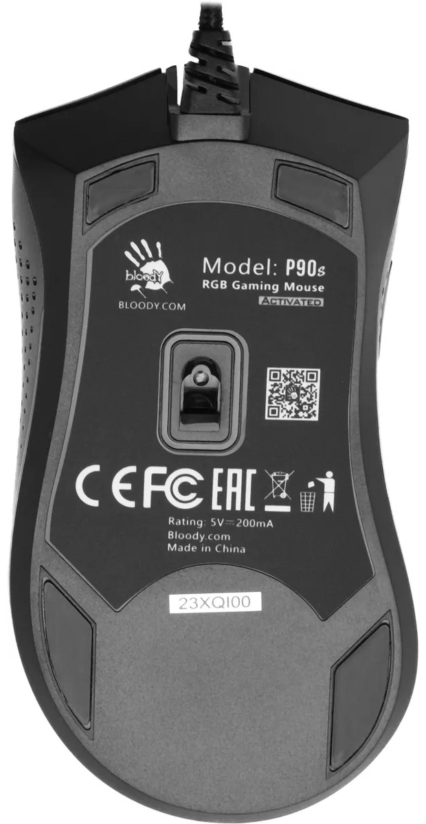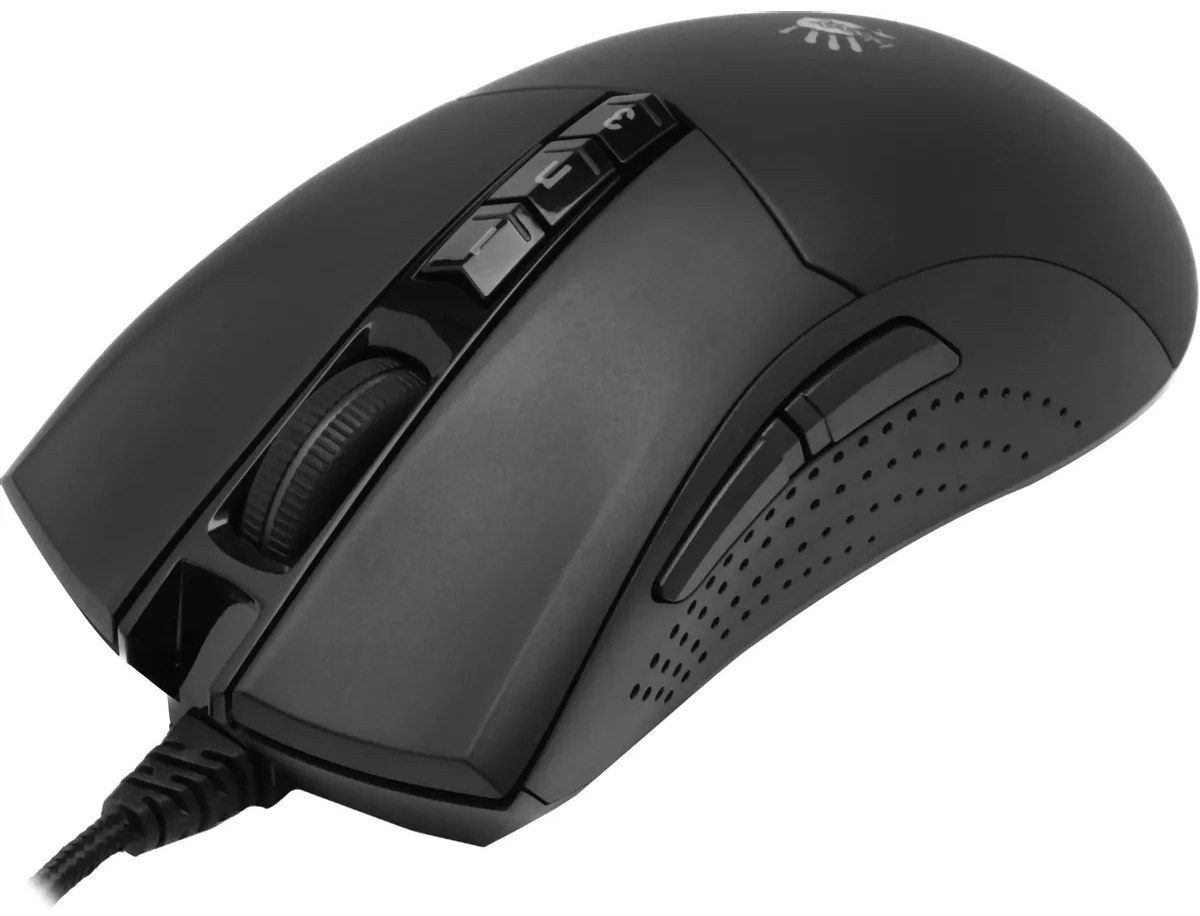 Классический черный цвет корпуса дополняет RGB-подсветка, которая настраивается для создания уникального дизайна. Прорезиненное колесо прокрутки порадует долговечностью и приятными ощущениями при касании. Форма корпуса мыши A4Tech Bloody P90s оптимизирована для управления правой рукой.