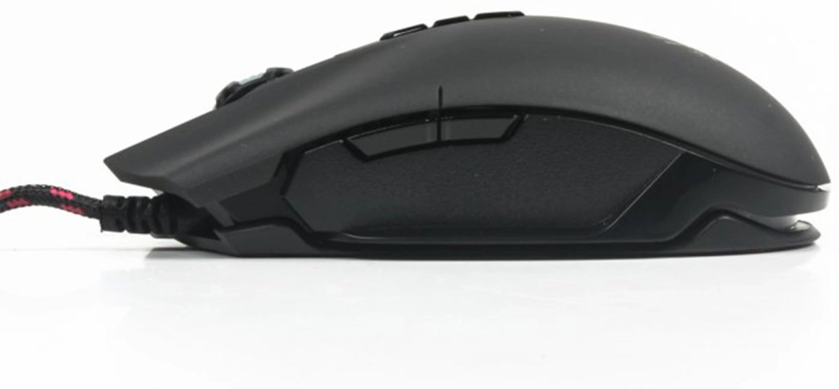 Проводная мышь подключается к ПК через USB-порт, провод длиной 1,8 м не сковывает движений и отличается долговечностью благодаря прочной оплётке. На корпусе есть восемь программируемых кнопок и колесо прокрутки.