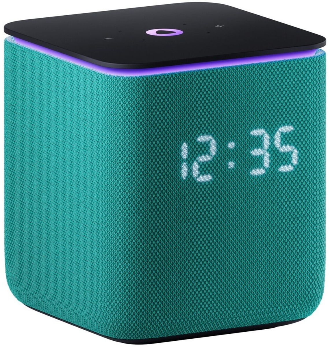 Приятный корпус с тканевой отделкой, доступный в разных расцветках текстильной части, не только придает колонке стильный внешний вид, но и создает приятные тактильные ощущения. Он также защищает динамики и слегка смягчает звук, а встроенный экран эффектно светится прямо на текстильной стороне.